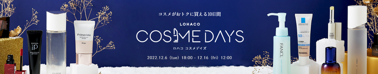 アスクル株式会社(本社:東京都江東区、代表取締役社長:吉岡晃)が運営する一般消費者向け(BtoC)インターネット通販サービス「LOHACO」(ロハコ、以下「LOHACO」)は本日18時より12月16日(金)12時までの10日間限定で、コスメ・スキンケアの祭典「LOHACO COSME DAYS(以下、「ロハコ コスメデイズ」)をLOHACO by ASKUL(以下、「LOHACO本店」)とLOHACO Yahoo!店にて開催します。