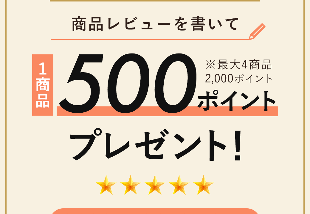 ・今回のレビューキャンペーンによるポイント付与は最大2000ポイント(4商品分)となります。
