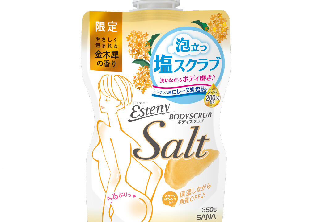 この度の限定品はやさしく包まれる金木犀の香りで登場。金木犀色のスクラブで気持ちも高まるバスタイムを演出します。また美容成分も贅沢配合。「ソルティスクラブ」と比較しオイルを200%(*2)配合したほか、はちみつ(*3)を配合し、お肌のうるおいを守ります。
