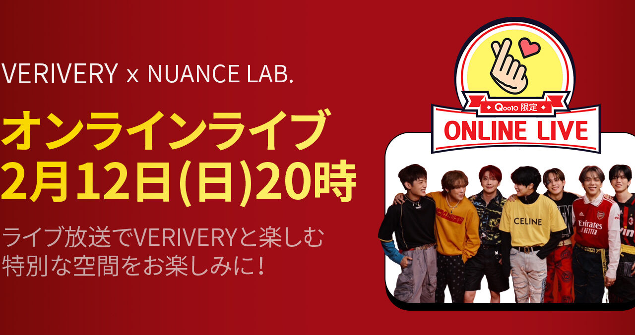グローバルな人気を誇るVERIVERYとNUANCE LAB.による特別なコラボレーションを記念し、Qoo10オンエアにて【Qoo10“限定”ONLINE LIVE NUANCE LAB.×VERIVERY】を開催します。
