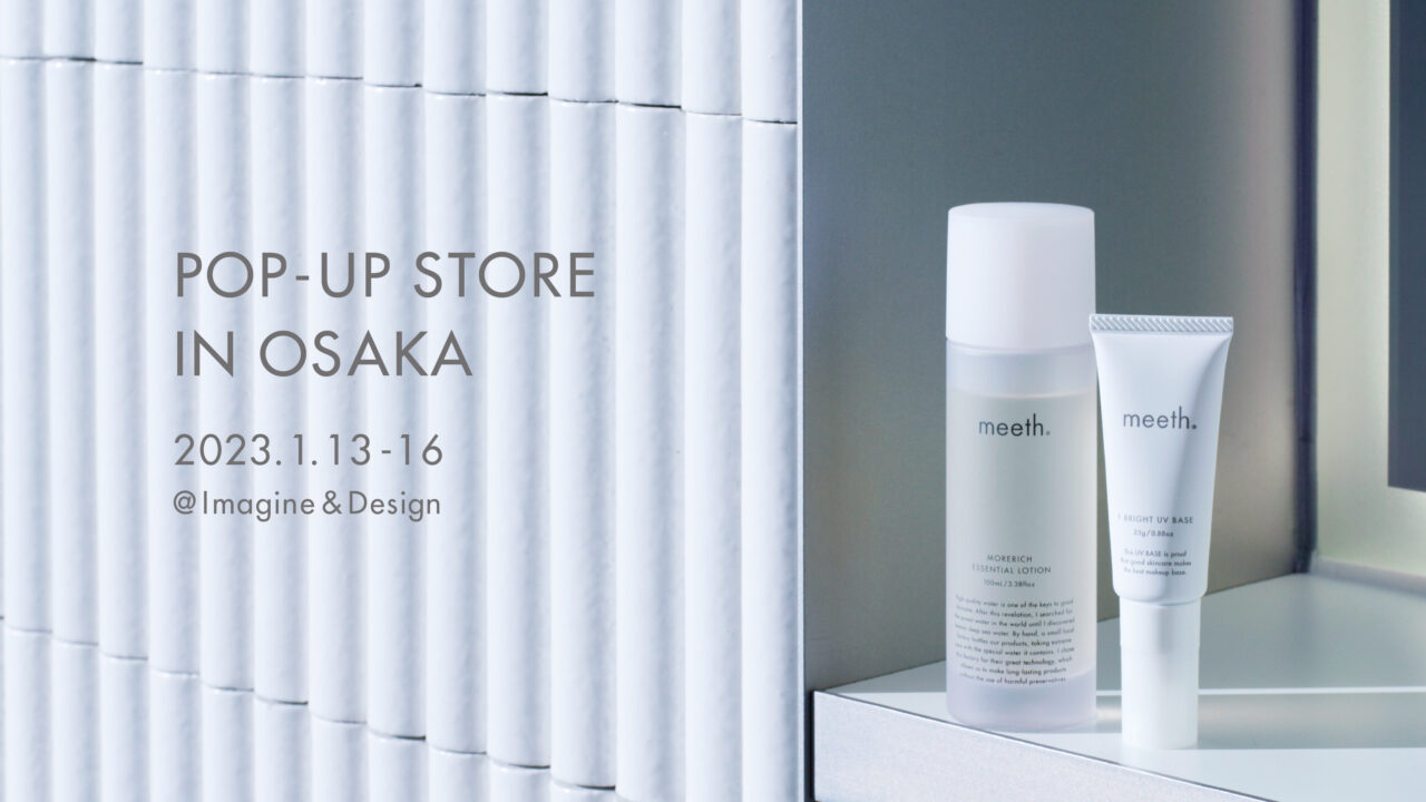 美肌を目指す人に寄り添うスキンケアブランド「meeth(ミース)」と、その姉妹ブランドとして誕生した、身体の中から美しく整える宅配冷凍ミール「&meal(アンドミール)」は共同で、2023年1月13日(金)〜16日(月)の4日限定で大阪・心斎橋にてポップアップを開催いたしますのでお知らせします。