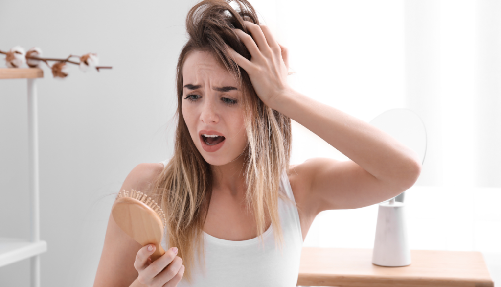 女性ホルモンのエストロゲンが減少し、男性ホルモン増加によりホルモンバランスが崩れ、髪の毛の細胞や頭皮に影響を与える。外的要因としては妊娠や出産加齢生活習慣の乱れ、ストレス染髪料などの薬品類による刺激の場合もあり。遺伝的要因は基本なし。