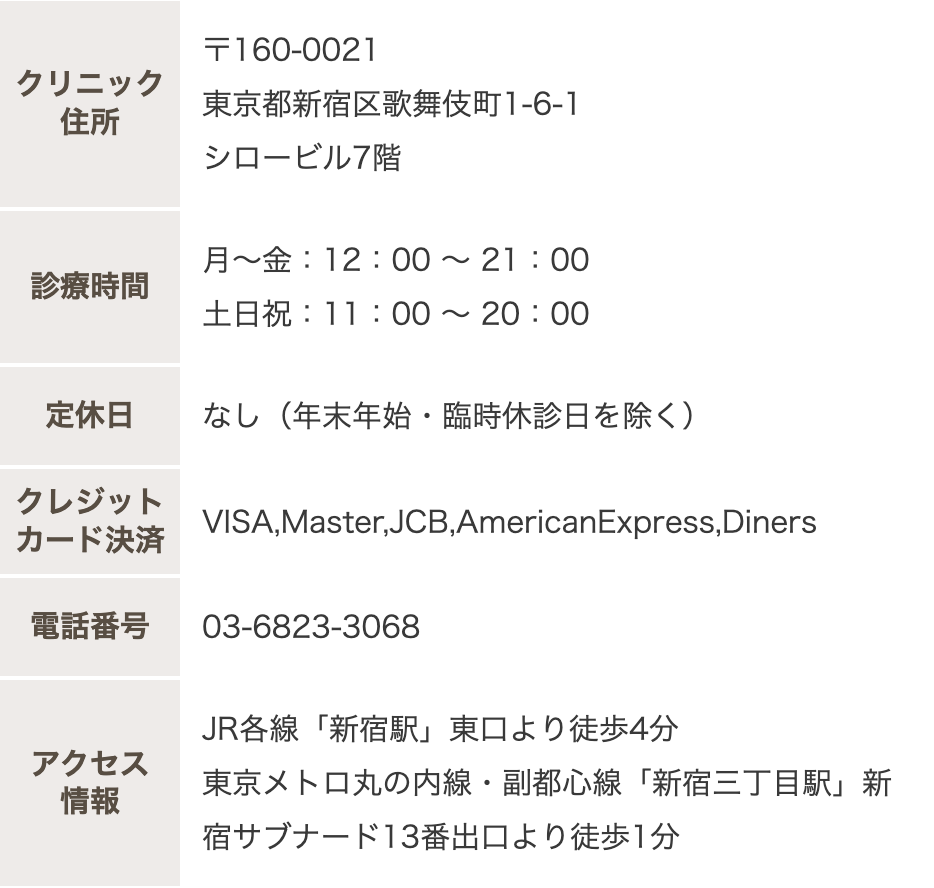 エトワールレジーナクリニック新宿院