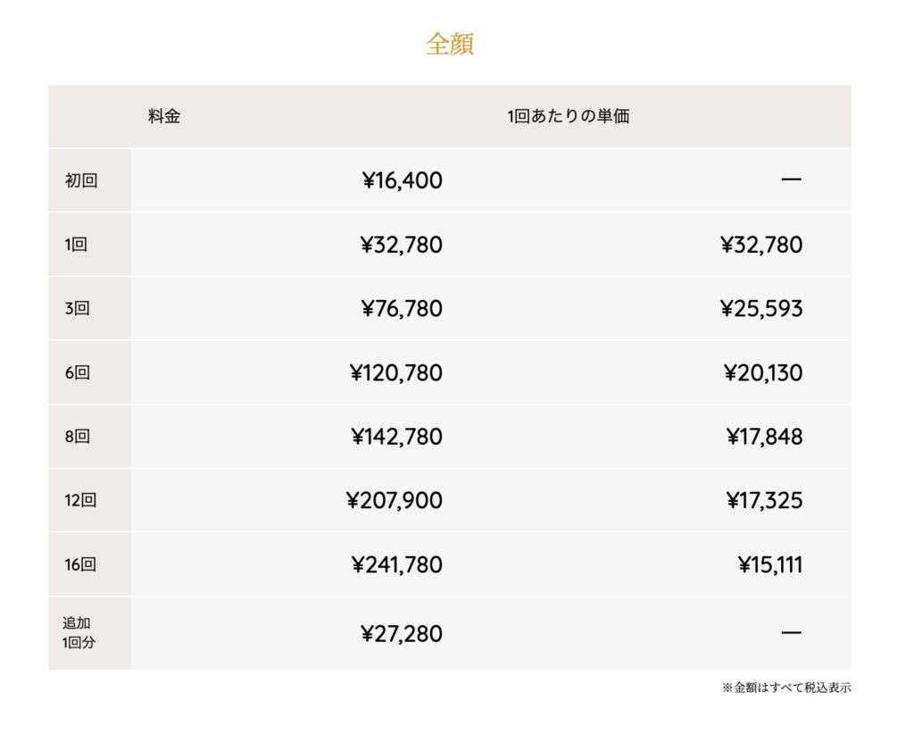 値段は他クリニックと比べても相場くらいな印象。おもてなしを重視しているそうで、他のクリニックに比べて施術時間長め?毎回、看護師さんがスキンケア指導してくださいます。