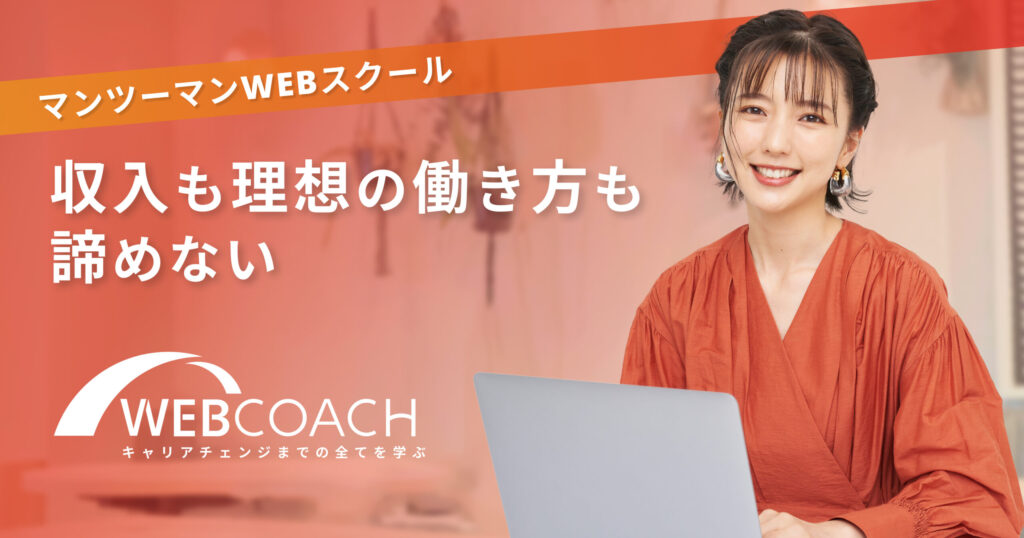 WEBCOACHは、Webデザインやプログラミング、マーケティングなど、幅広いスキルを学べるオンライン型のWebデザインスクールです。